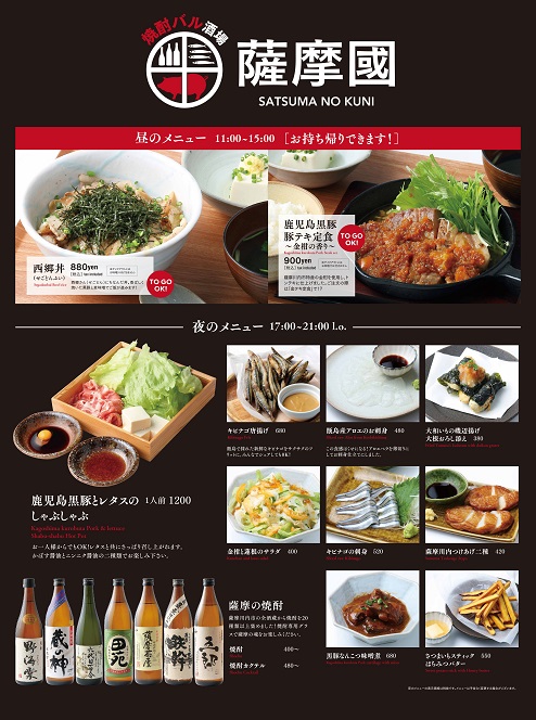本市の食材を使用した飲食店を展開。薩摩川内市の7つの蔵元から芋焼酎を、料理は黒豚、キビナゴ、アロエなどを使用した、オリジナルメニューを提供します。