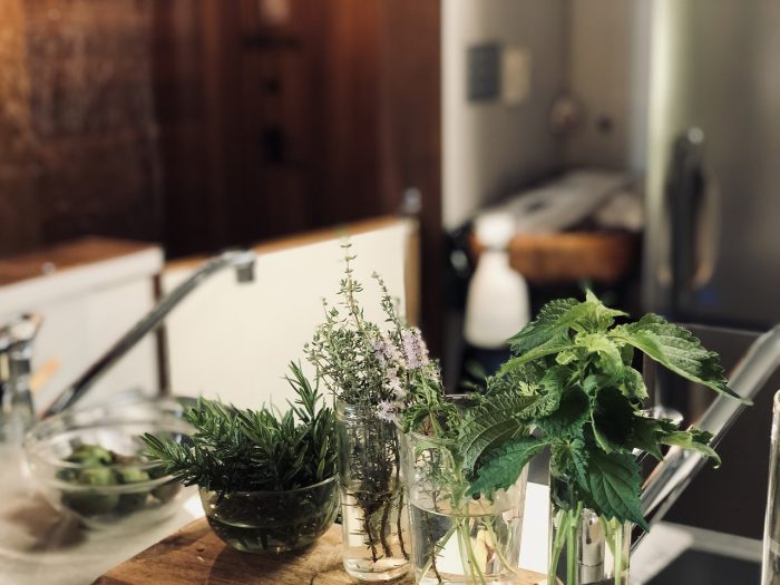 近所の方が分けてくれる野菜や、自分たちで育てているハーブやフルーツをふんだんに使い、腕をふるっています。もともと手作業やものづくりが好きだったそうで、「今は料理にハマっています」と笑顔。