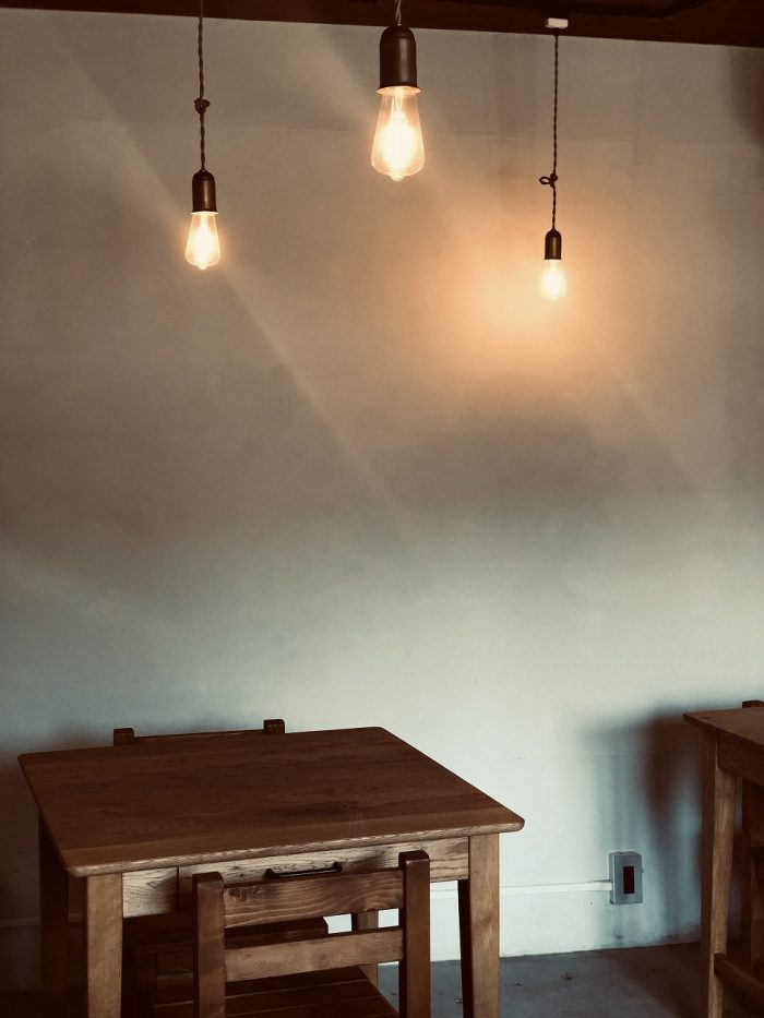 テーブルやいす、照明も心地よく。