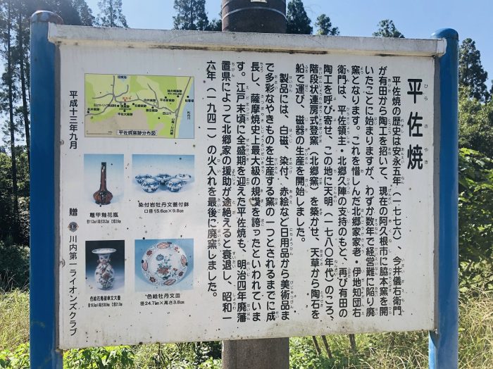 献上品となる芸術的なものから日用品まで、多種多様な製品を生みだしていた平佐焼。その輝きは、川内歴史資料館、鹿児島市立美術館、鹿児島県歴史・美術センター黎明館などで鑑賞することができます。窯跡を訪ねることで、天草から川内、長崎から世界へとつながっていた水運の歴史、そして明治維新へと向かっていく薩摩藩において、その一端を担っていたであろう平佐郷の殖産興業の炎の名残を感じられると思います。