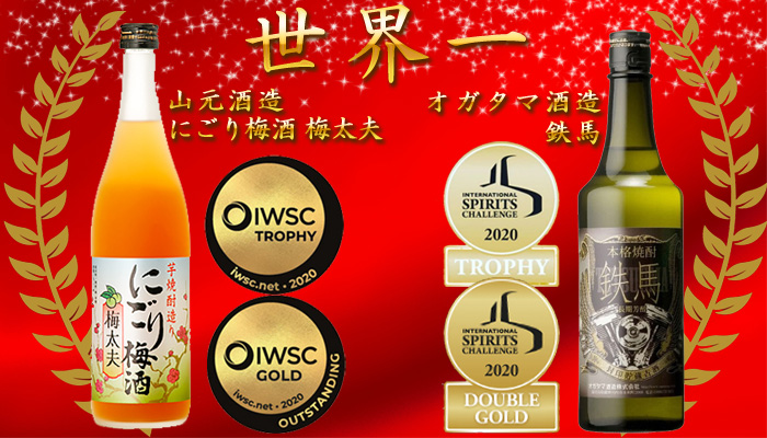 山元酒造「にごり梅酒【梅太夫】」とオガタマ酒造「鉄馬」が世界一に輝きました!