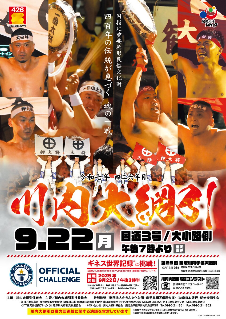 令和7年度の薩摩川内子供大綱引は9月13日土曜日に、川内北中学校横の県道・京泊大小路線にて開催いたします。