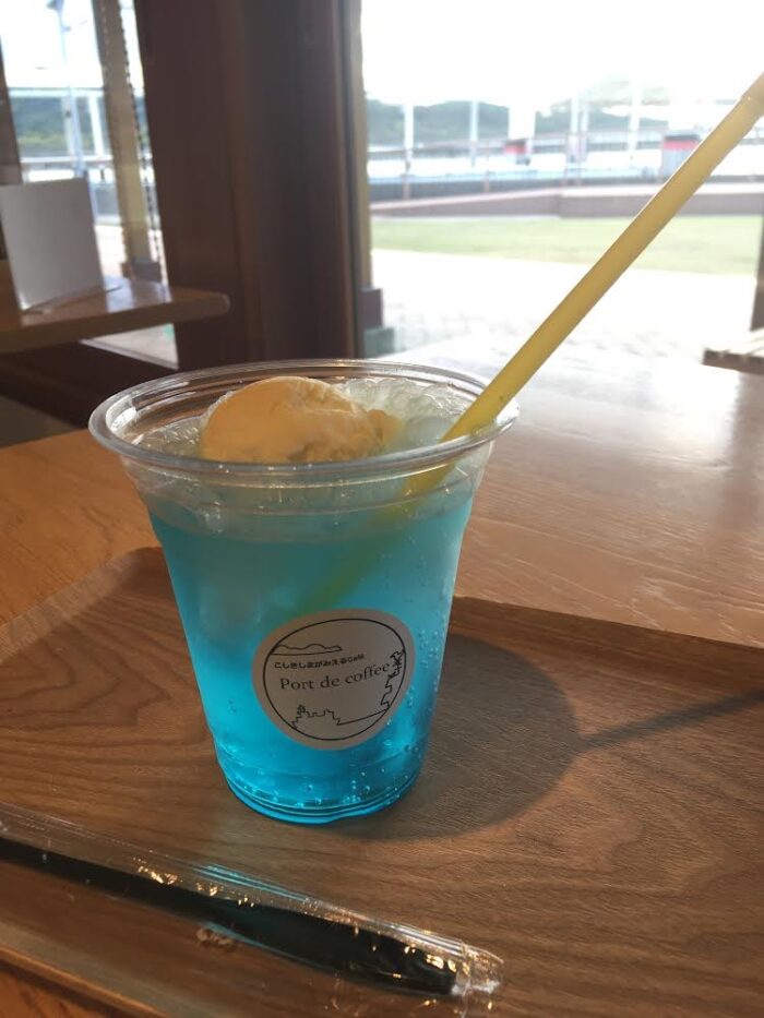 どんな飲み物かというと、川内川に見立てた青いソーダにアイスクリームが乗っていて