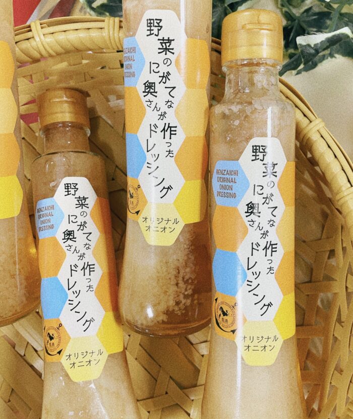 この野菜のうま味があるドレッシング。味はごまオニオン、しょうゆオニオン、オリジナルオニオンの3種類。