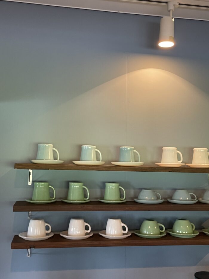 そんなオーナーが新しく作ったブリスコーヒーの店内はブルーの壁に天井と床に木を使用していてお洒落で落ち着いた空間。
