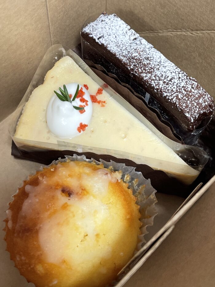 そしてメインのショーケースには常時4種類の手作りスイーツ、その横には手作りマフィンが2種並んでいます。この手作りスイーツは基本的に月替わりになるとのこと。