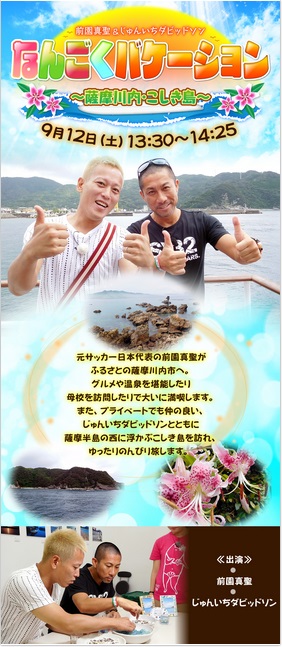 【テレビ情報】9月12日(土)「前園真聖&じゅんいちダビッドソン なんごくバケーション~薩摩川内・こしき島~」放送!