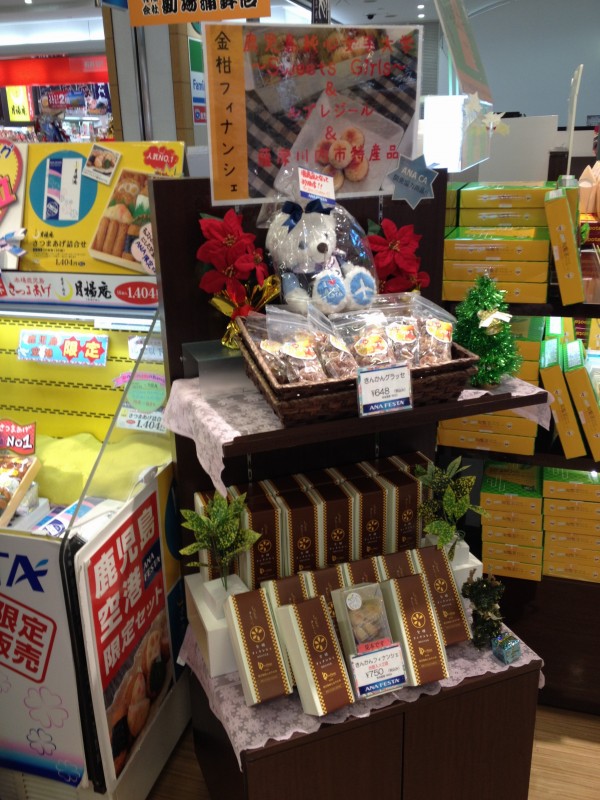 ホーム お知らせ 鹿児島空港でキンカン商品 販売... お知らせ 2015.12.02 鹿児島空港でキンカン商品 販売中! お知らせ 鹿児島空港で薩摩川内市の特産品「キンカン」の商品を販売しています! 鹿児島のお土産として、ぜひ、ご購入くださいね♪ ◇販売期間◇ 平成27年12月1日~31日 ◇販売場所◇ 鹿児島空港 ANAFESTA1階と2階 ◇販売商品◇ ・きんかんグラッセ(あすくーる) ・きんかんフィナンシェ(ルプレジール) ・入来きんかん(来週中に販売予定) ↓ ANAFESTA1階 ↓ANAFESTA2階 この記事をシェアする 前の記事 一覧 次の記事