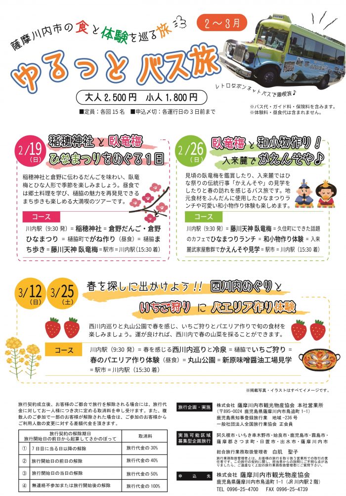薩摩川内市の食と体験を巡る旅「ゆるっとバス旅」の2月19日(日)コースは現在満席となっております。