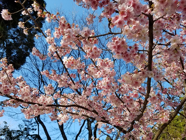 神殿前の寒桜 / 開花状況:満開(一部葉桜)