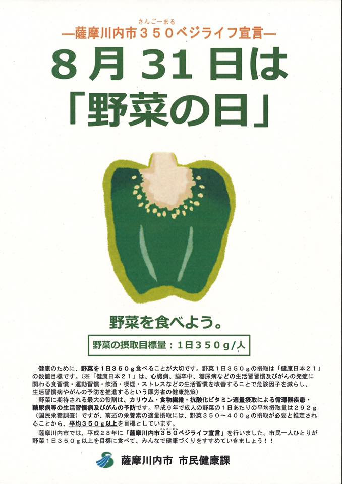 1人1日350gを目標に、今日は特に意識して野菜を食べてみませんか?