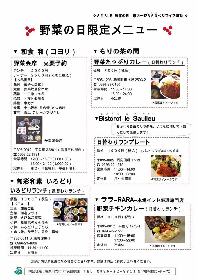 賛同団体である下記の飲食店さんで、野菜の日限定メニューを食べることができます!