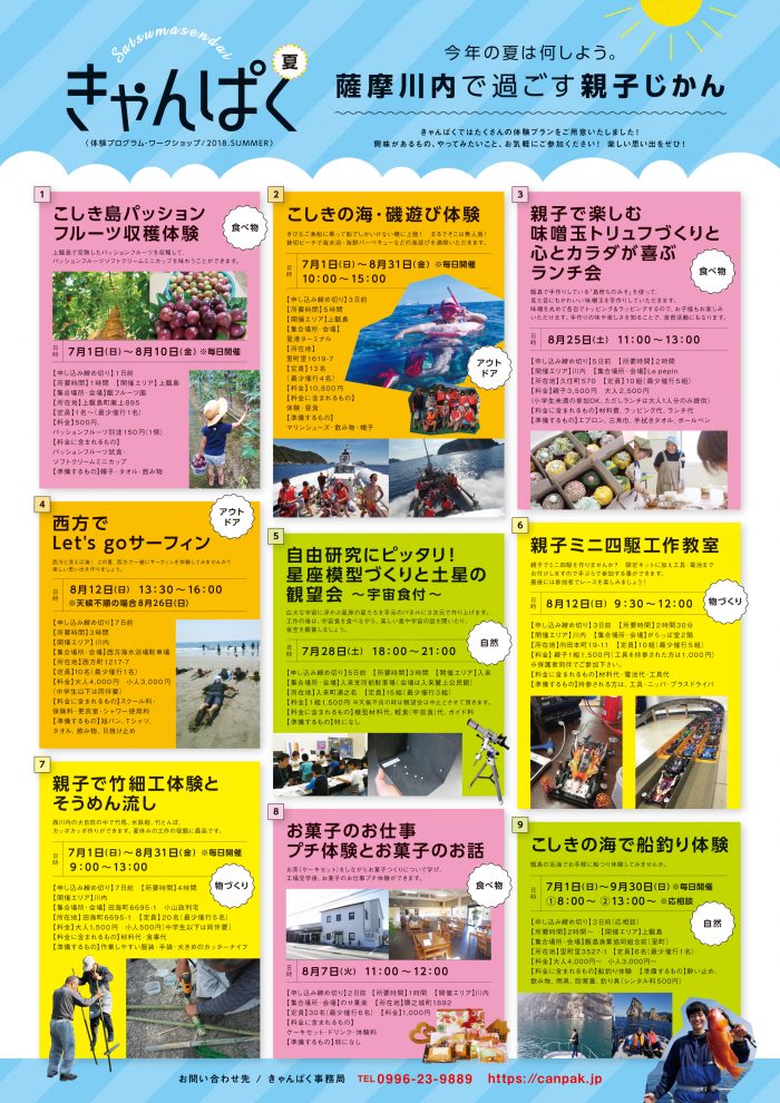 2018 きゃんぱく夏では、18のプランをご用意しております。