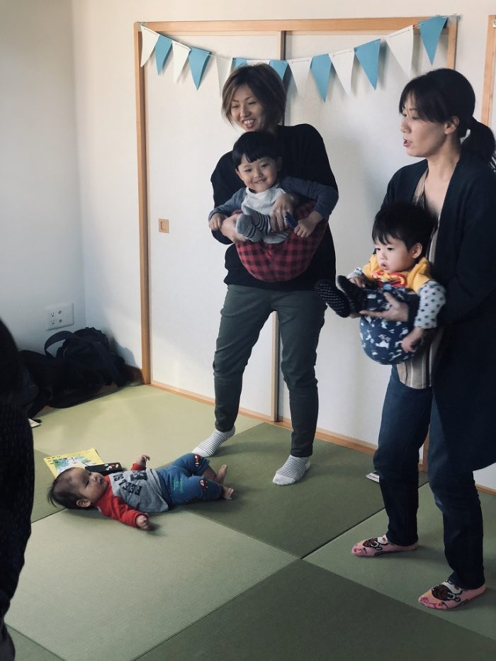 つづいて、スマートハウス2階の和室で行われた、赤ちゃんとお母さんのベビーリンパマッサージ。