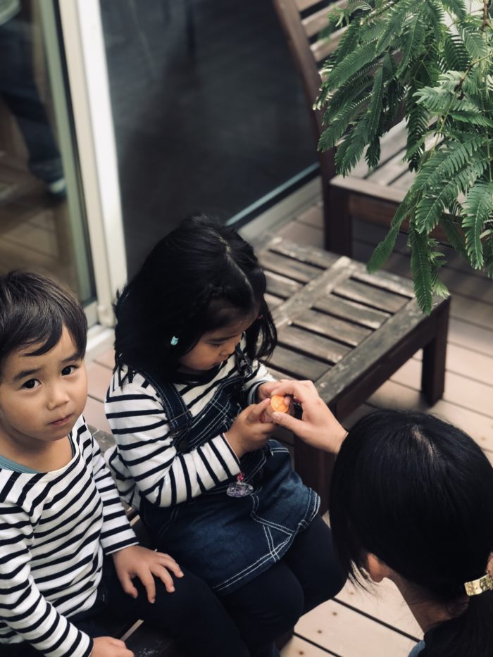 具を包んでいきます。親子でわいわい話しながらの手作業が楽しい♪