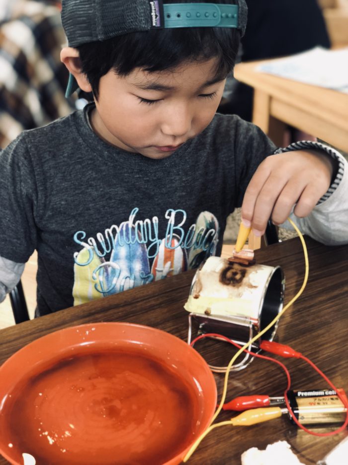 こちらは、オリジナルのマグカップづくり。電気の力で金属の表面を腐食させ、文字を彫り込むものです。