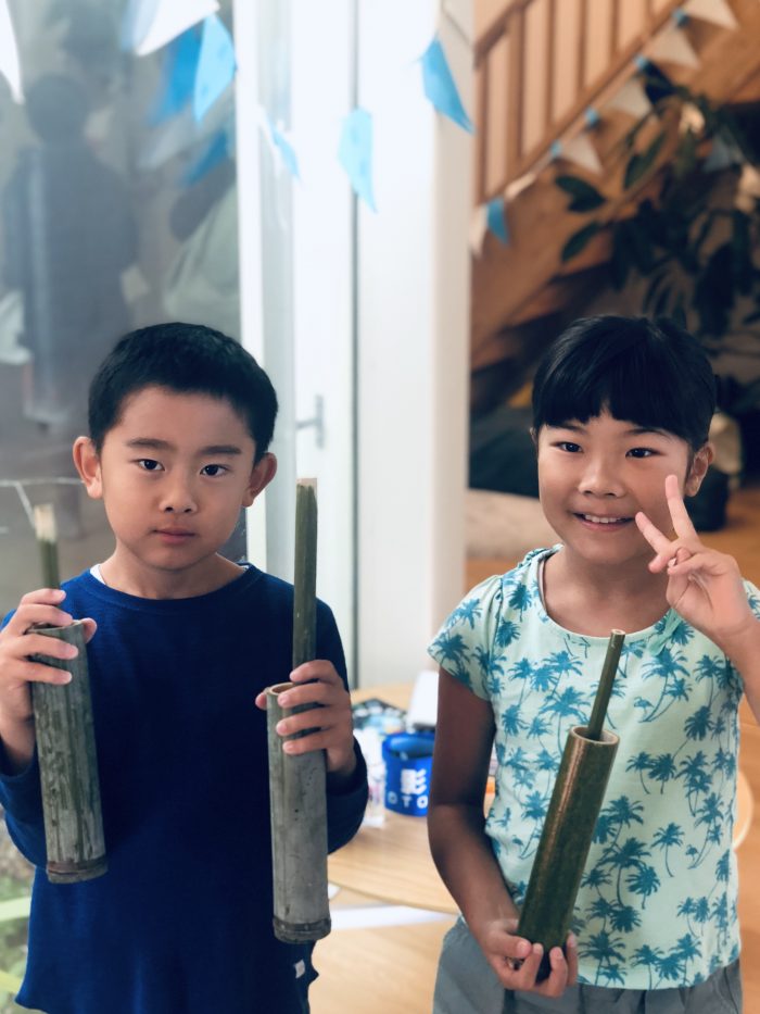 この日のイベントは、すべて薩摩川内市の子どもたちによるアイデアが元になっています。薩摩川内市特産の竹炭をつかった餃子づくり、パンケーキづくり、竹でつくった水鉄砲あそび、お隣いちき串木野に伝わる染め物、電気の力で加工するオリジナルマグカップづくり、赤ちゃんとお母さん、お父さんが触れ合うベビーアート等など、盛りだくさんの内容!