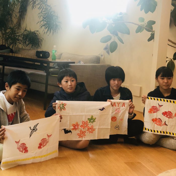 型紙を使った染めものでつくるマイ手ぬぐいも上手にできました!