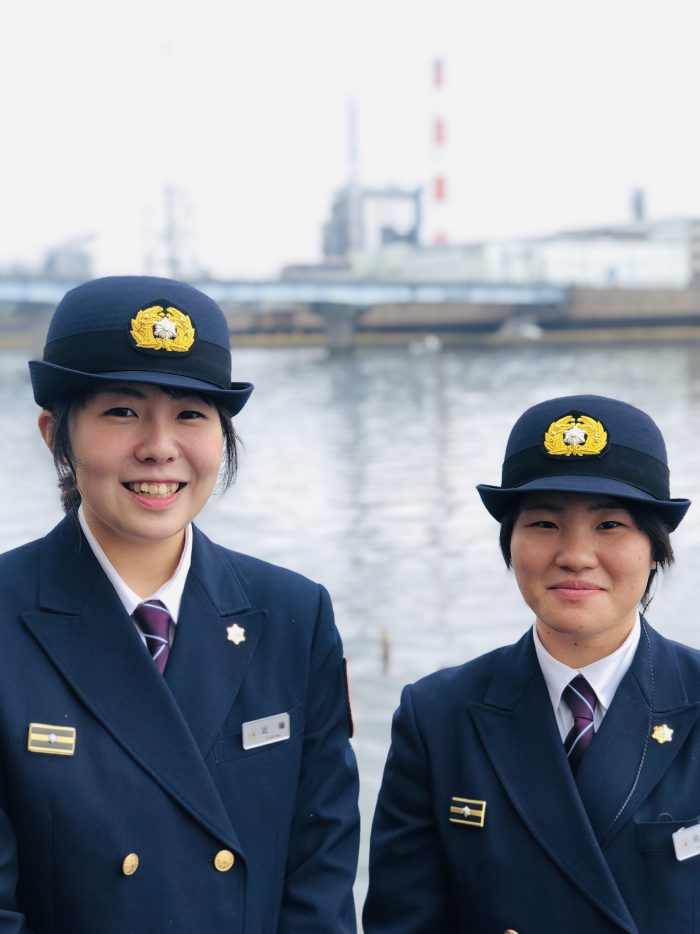 女性職員も増えています。救命士と消防隊員のおふたり。