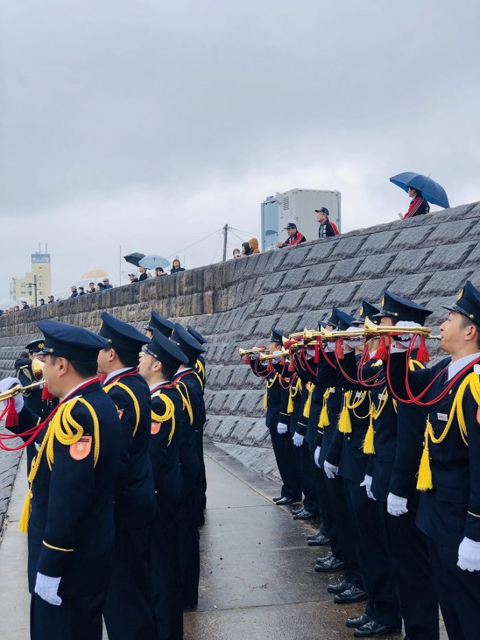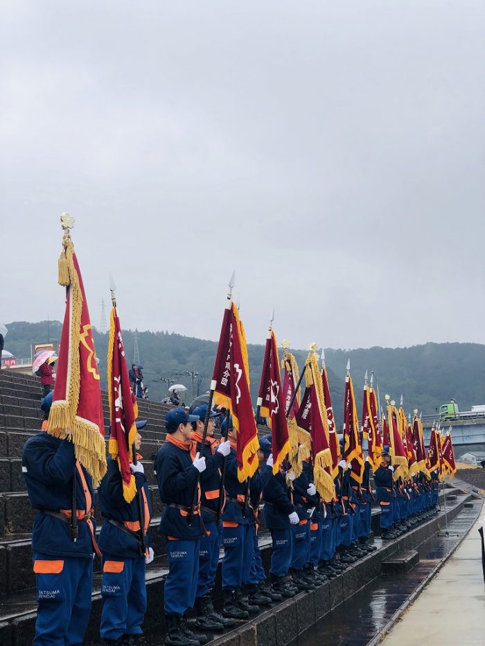 冷たい小雨がそぼ降るなか、薩摩川内市各地の消防団員1119名が参列。
