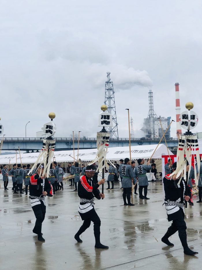 続いて、纏(まとい)の皆さん。江戸時代の火消しの際、火災現場の目印や仲間を鼓舞する役目を担っていたようです。