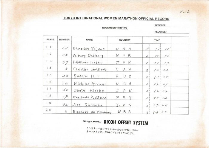 日本で初めて開催された国際陸連公認の女子フルマラソン大会に、イチ子さんは招待選手として参加する。結果は、日本人選手の2位、全体でも13位という堂々の成績。