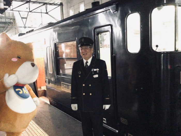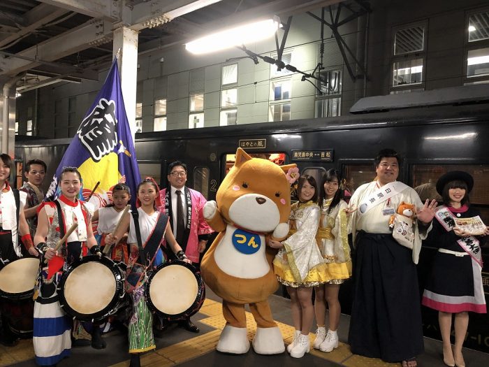 西郷つんもお見送りに駆けつけました!焼酎列車、出発進行~♪
