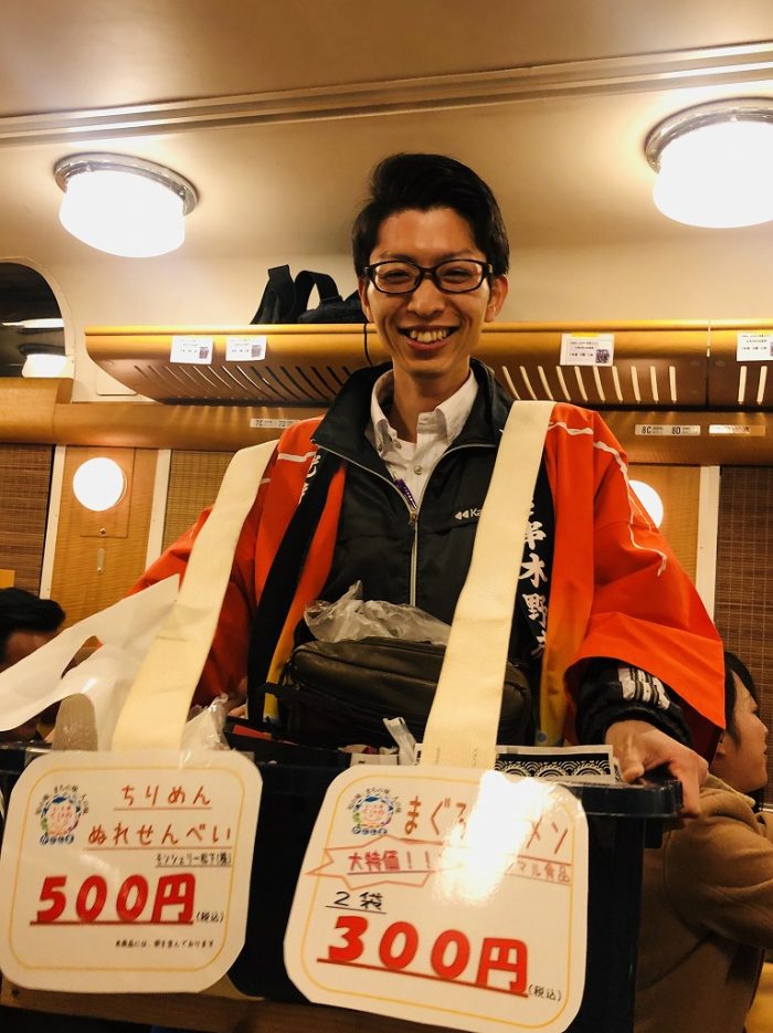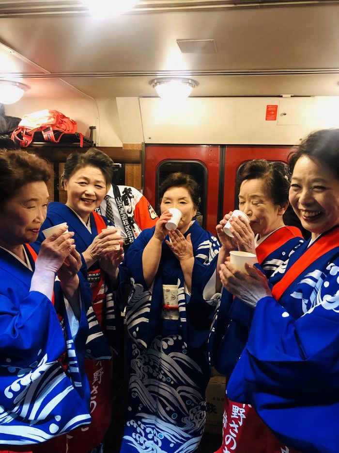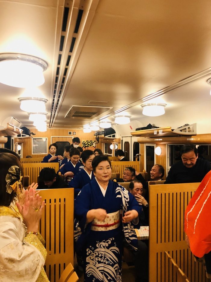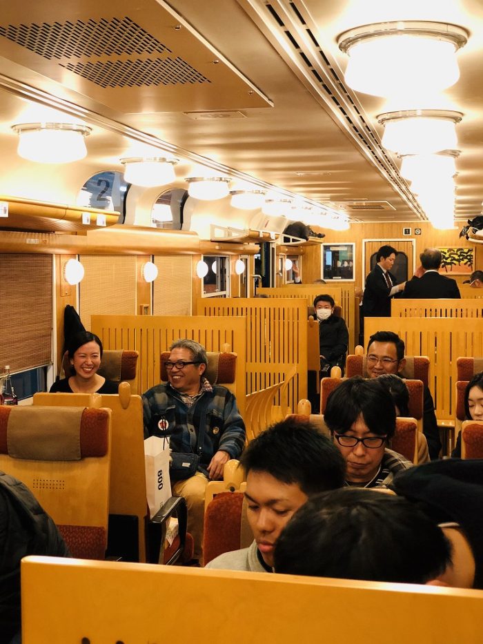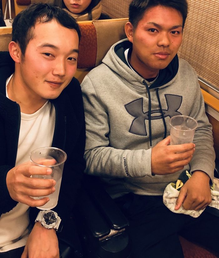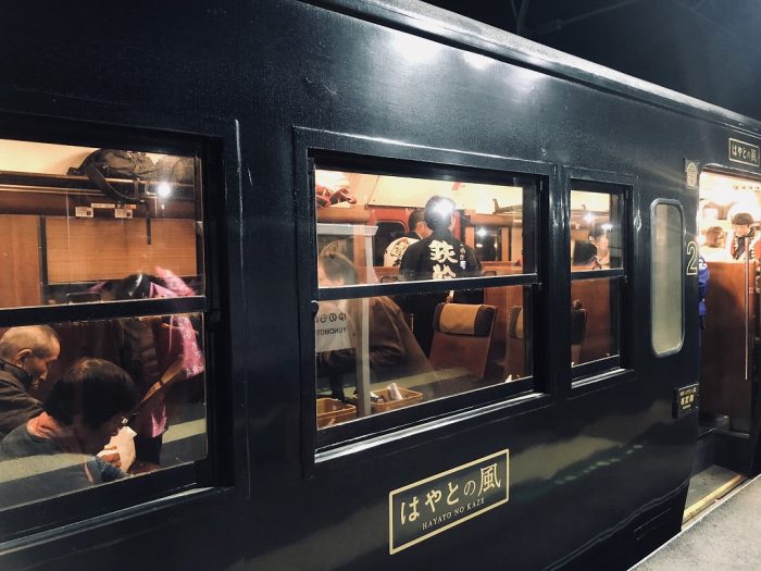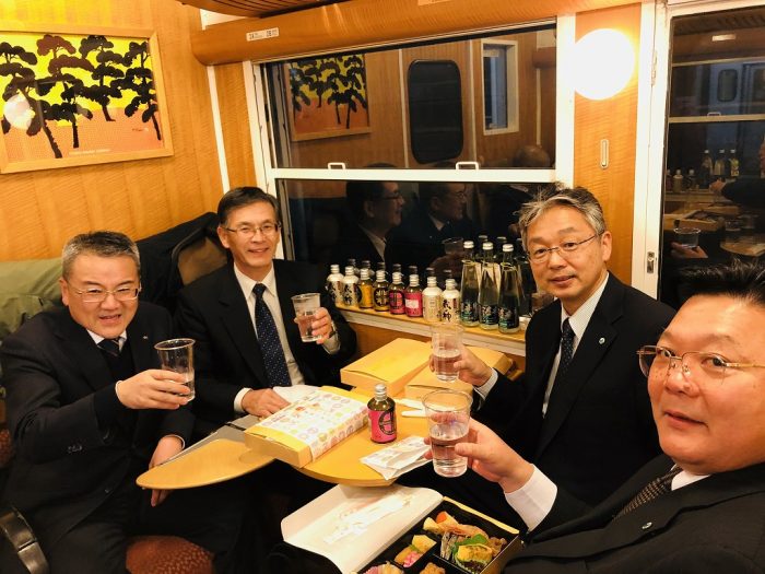 「乗り鉄」さんでもあるというお二人。「はやとの風に乗って、焼酎まで飲めて楽しいです」