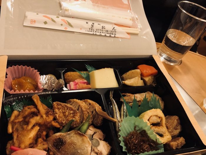 北薩の特産品をあつめた「おつまみ弁当」で一杯飲み・・・