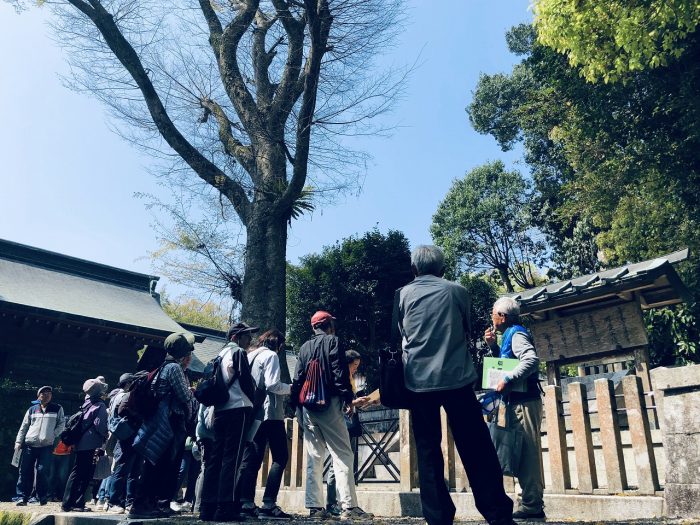 拝殿に向かって二礼・二拍手・一礼。 薩摩川内市観光ボランティアガイド いたっみろ会の皆さんによるガイド付き。