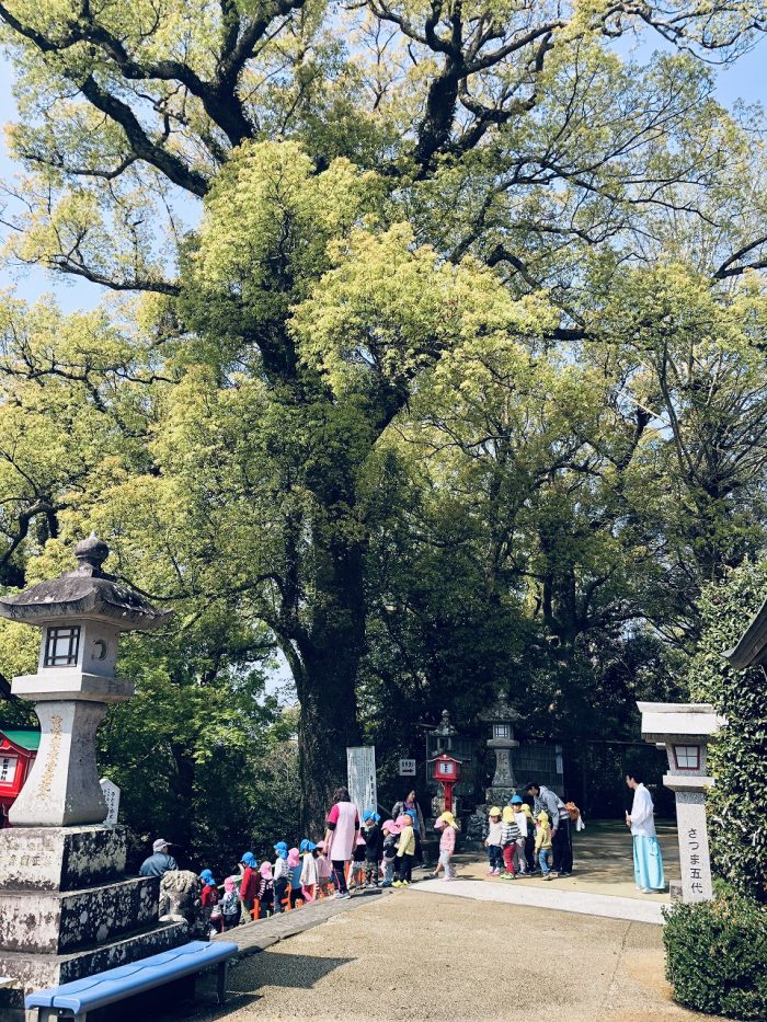 ふたたび新田神社へと戻ってきました。風に舞う桜の花びらがより一層、神話の世界へと導いてくれる心地がしました。