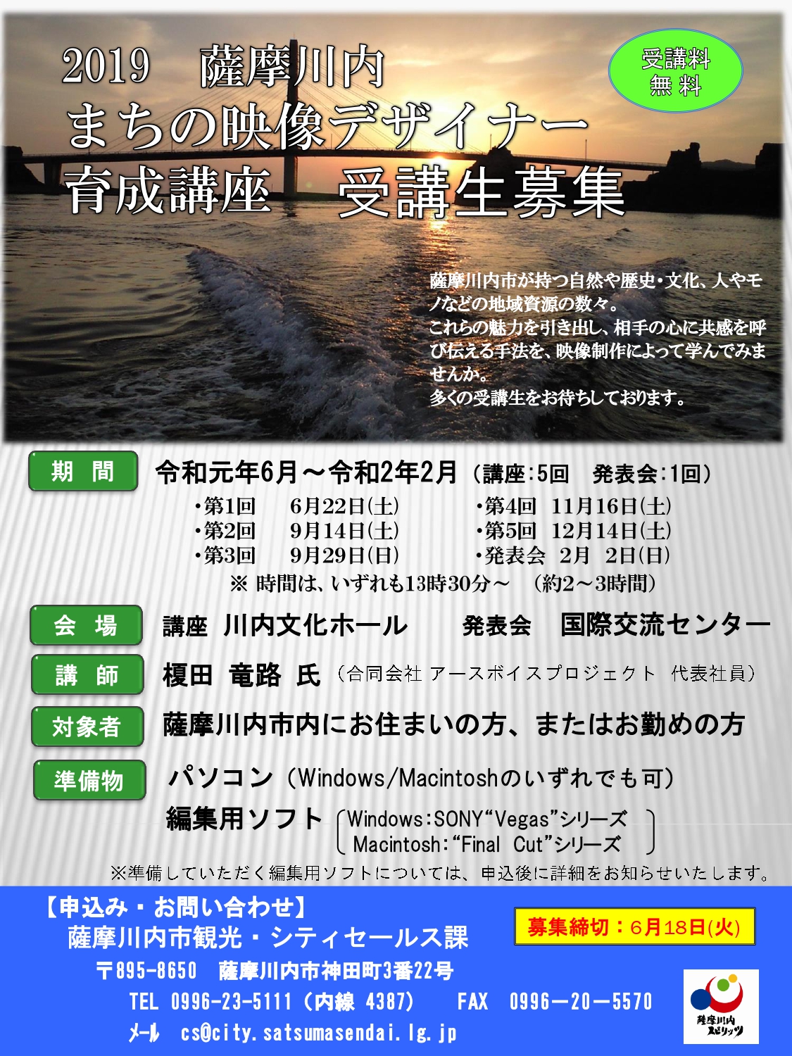 2019 薩摩川内まちの映像デザイナー 育成実践講座 受講生募集![受講料無料]