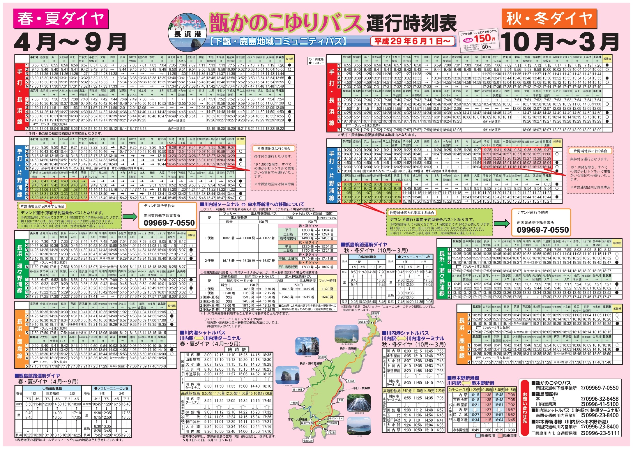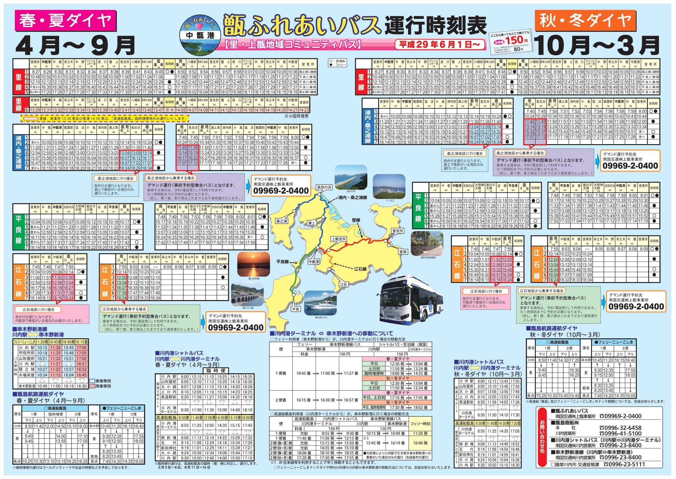 高速船甑島で甑島を訪れる場合は、片道大人150円で利用できるコミュニティバスを是非、ご利用ください。