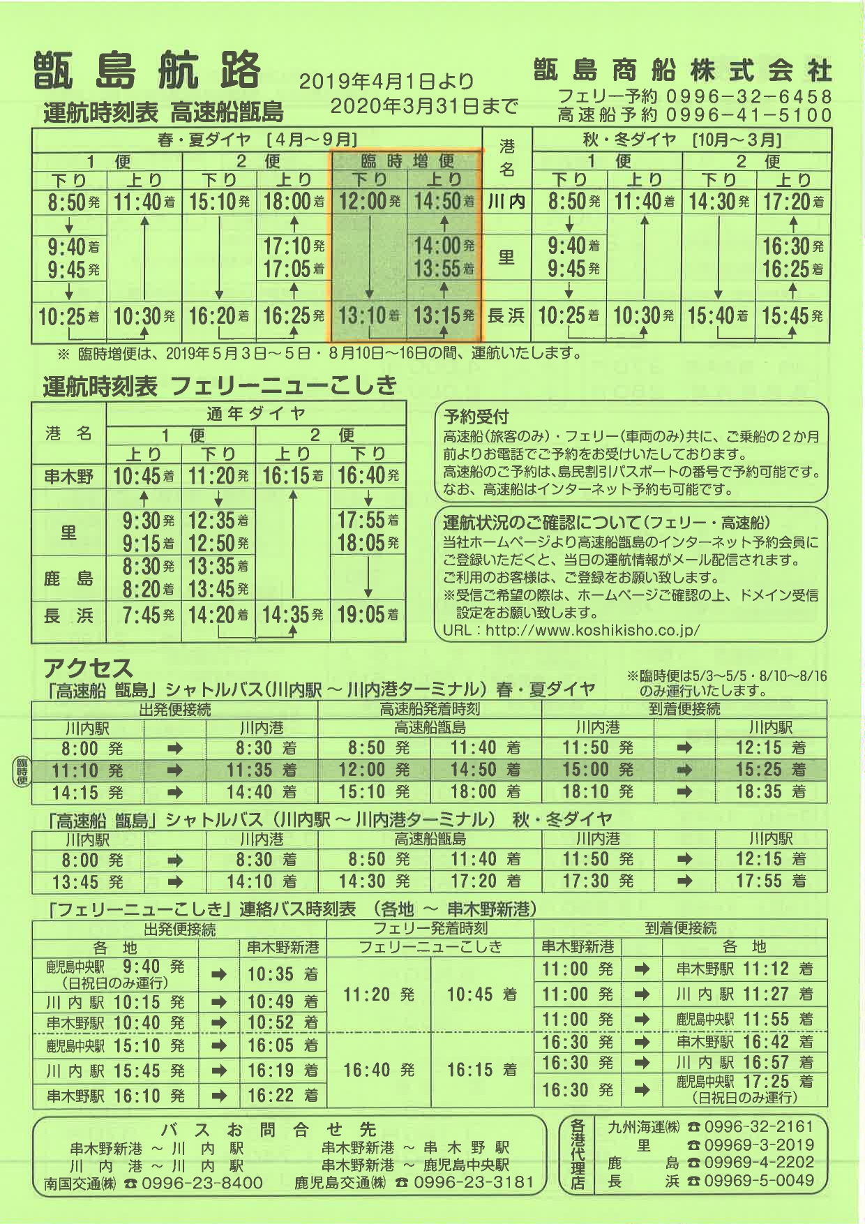 お盆期間中の高速船甑島臨時便運航(8/10~8/16)及びアクセスについて(お知らせ)