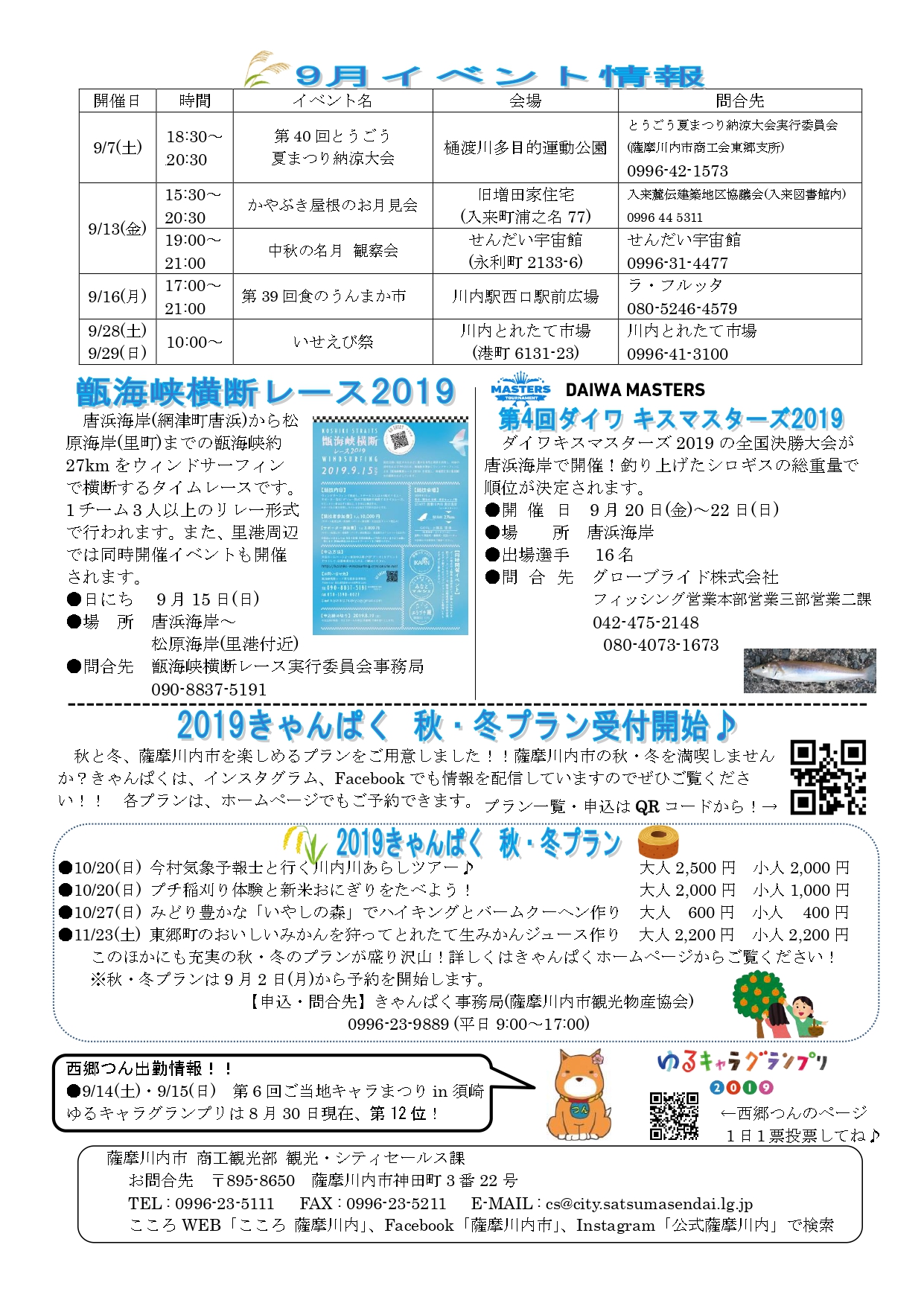 【月刊 薩摩川内シティセールスニュース】Cocoro令和元年9月号