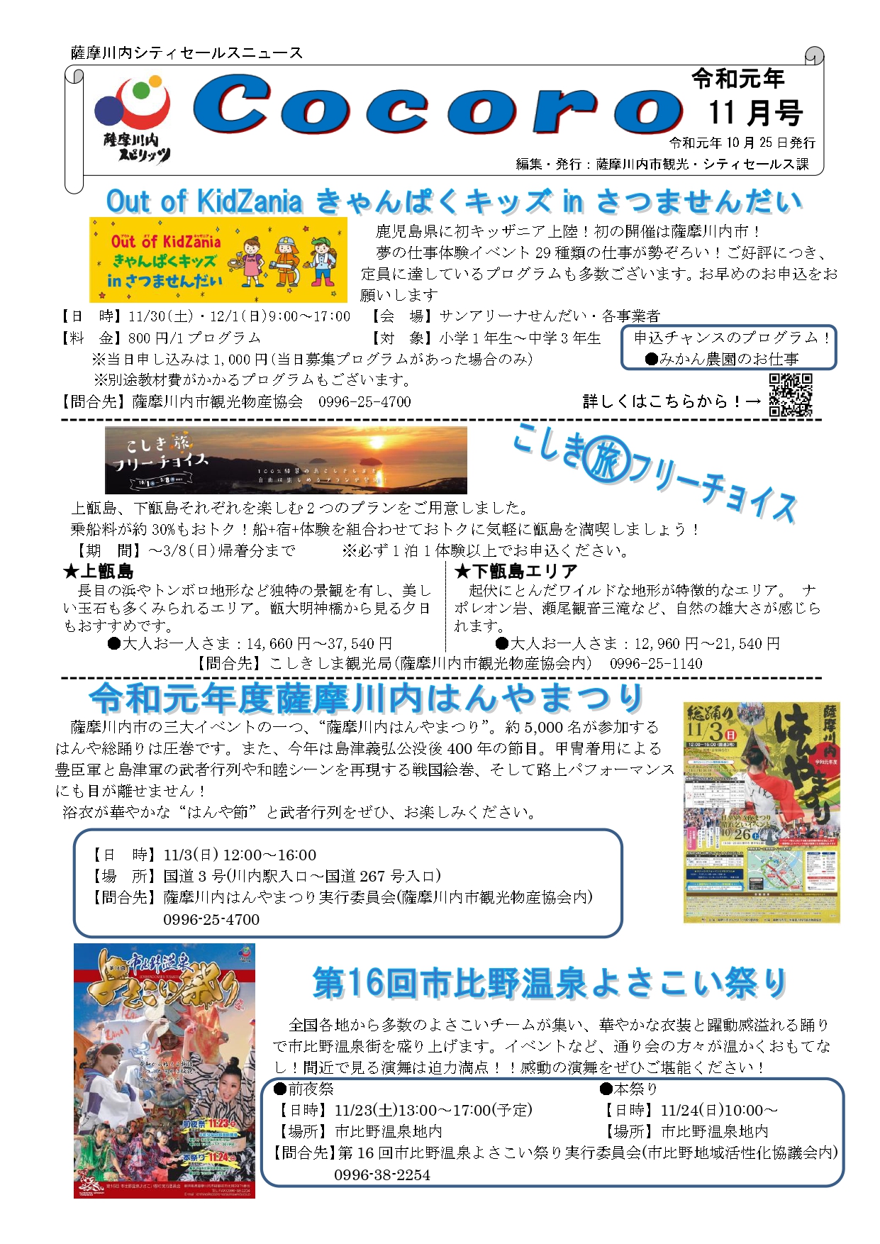 【月刊 薩摩川内シティセールスニュース】Cocoro令和元年11月号