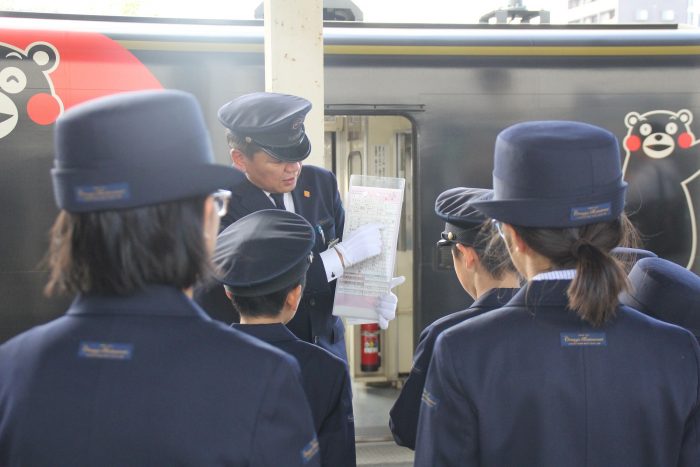 川内と八代をつなぐ“肥薩おれんじ鉄道”。今回は駅員として車内清掃やきっぷ販売、出発合図などの仕事をしました。
