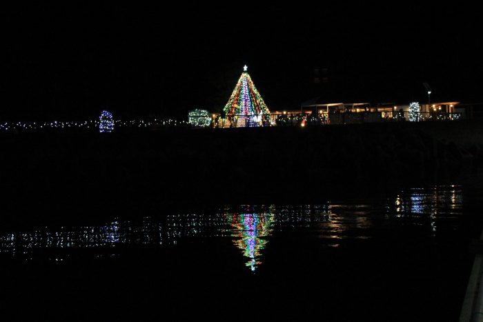 “高速船甑島”2便上りが川内港ターミナルに入港する少し前から点灯を始めます。点灯式では、コーヒーやお菓子の振る舞い、ミニコンサートなどが開催され、にぎわいました。