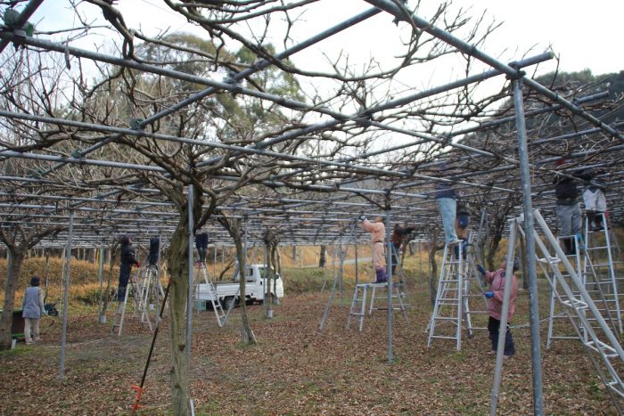 毎年、薄紫色に藤本滝公園を彩る藤の花。きれいに花を咲かせるために地区の皆さんで剪定と落ち葉の清掃を行いました。
