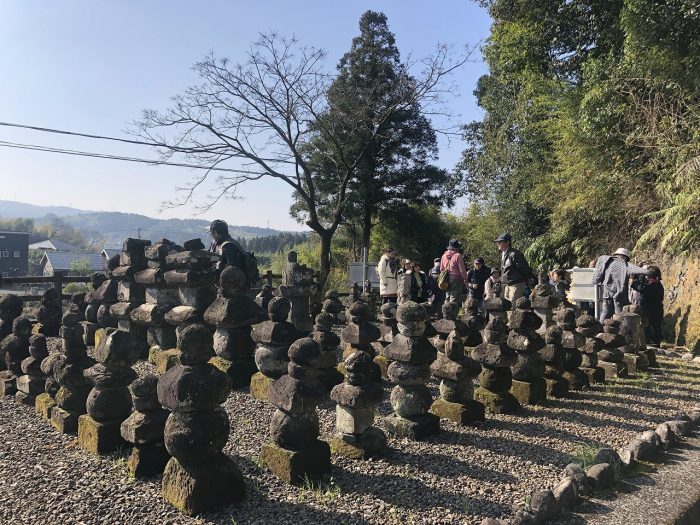 山城の前にまずはこちら。「船瀬殿墓(ふなせどんばか)」です。三方を樋脇川に囲まれる入来麓。樋脇川は天然の堀として町を守り、船による水運を担ってきました。船瀬(船着き場)の歴史は古く、なんと奈良時代にまでさかのぼるそう。この船着き場を管理する一族子孫は「船瀬氏」を名乗り、入来院家からも一目置かれる名家でした。船瀬殿墓には鎌倉時代から戦国時代にかけて作られた100基近い石塔群があり、薩摩川内市の指定文化財となっています。