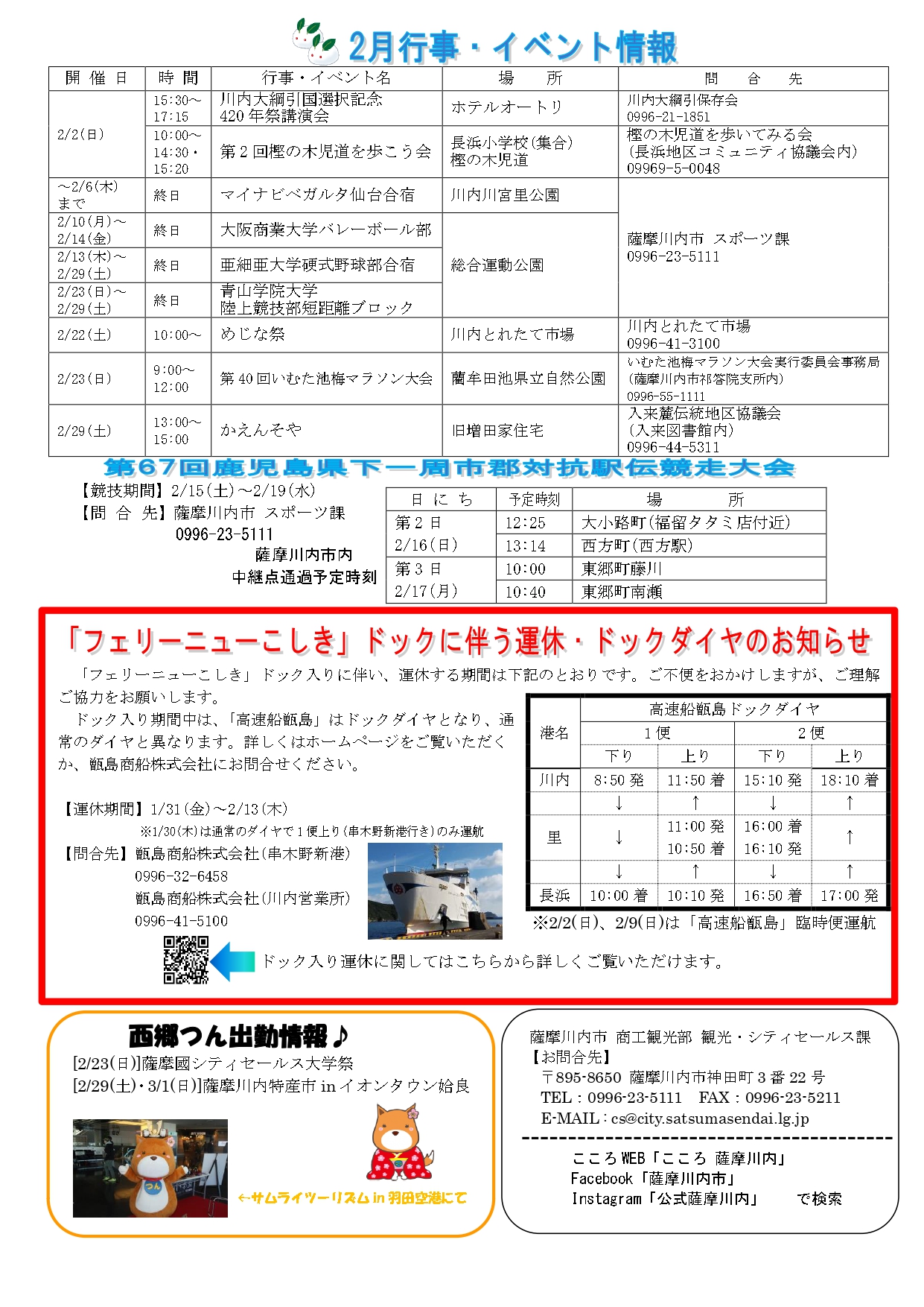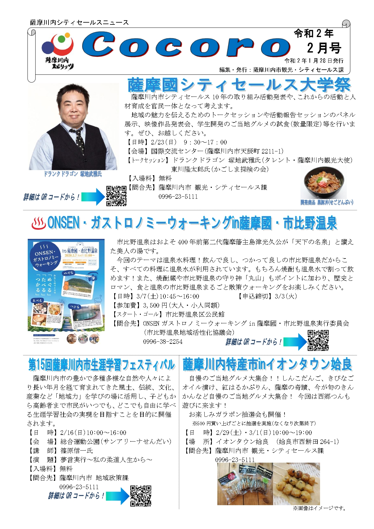「月刊 薩摩川内シティセールスニュース Cocoro 令和2年2月号」が発行されました。