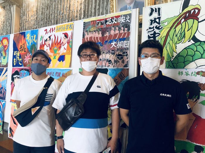 川内大綱引を支えている現役の皆さんも試写に駆け付けました。田辺屋孝宏さん(写真中央)には「20周年!薩摩川内子供大綱引」にて話をお伺いしています。