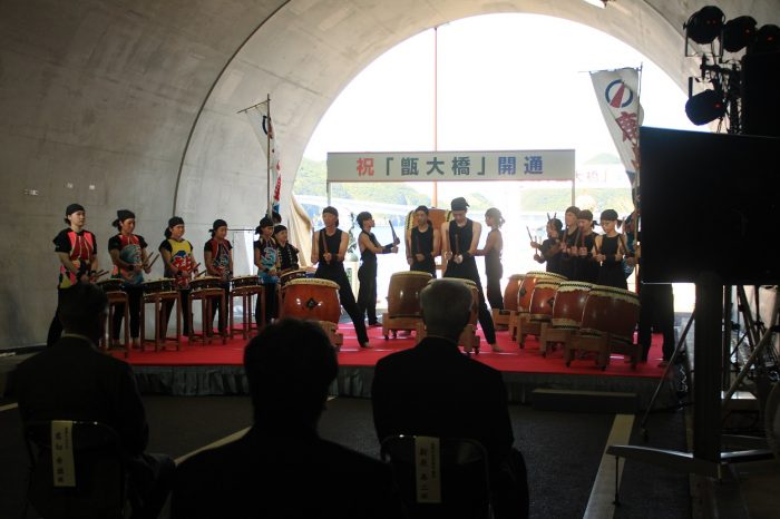 式が始まり、まずは鹿島地区コミュニティ協議会 郷土芸能保存会による「鹿島太鼓」の披露がありました。