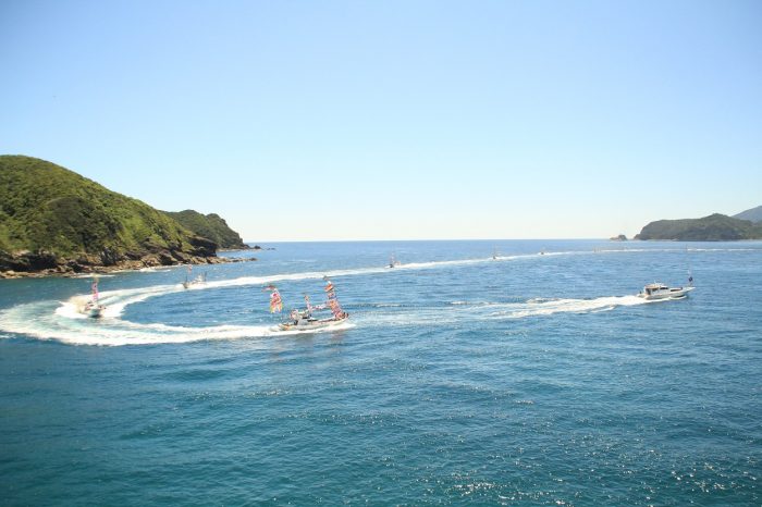 この日は上甑島と下甑島の船、あわせて30隻ほどが参加しました。