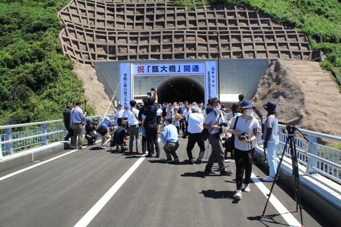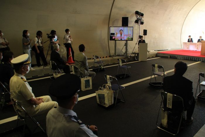 車両渡初めは警察車両を先頭に、県知事車、市長車、救急・消防車、建設関係等のトラック、観光バスが通過しました。