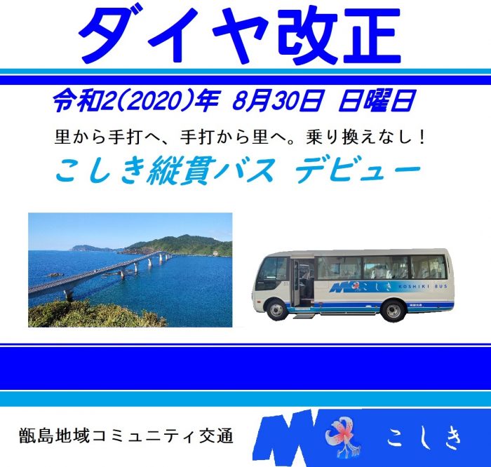 ●甑大橋を経由し、里-手打を結ぶ、「こしき縦貫バス」を新設(里線、平良線、長浜・鹿島線、手打・長浜線を統合)