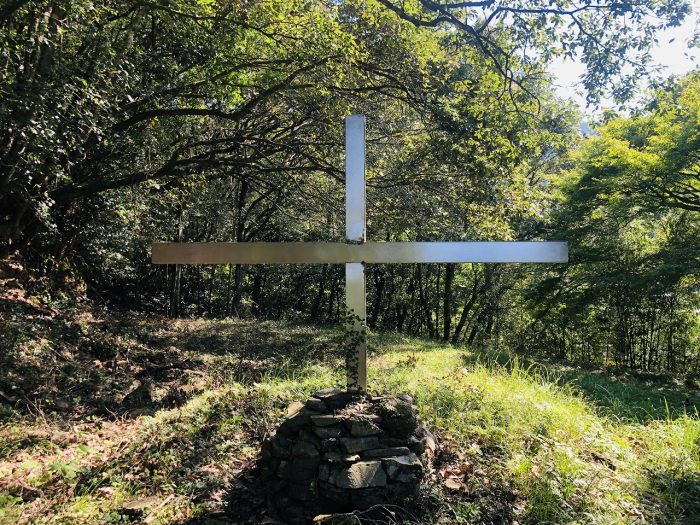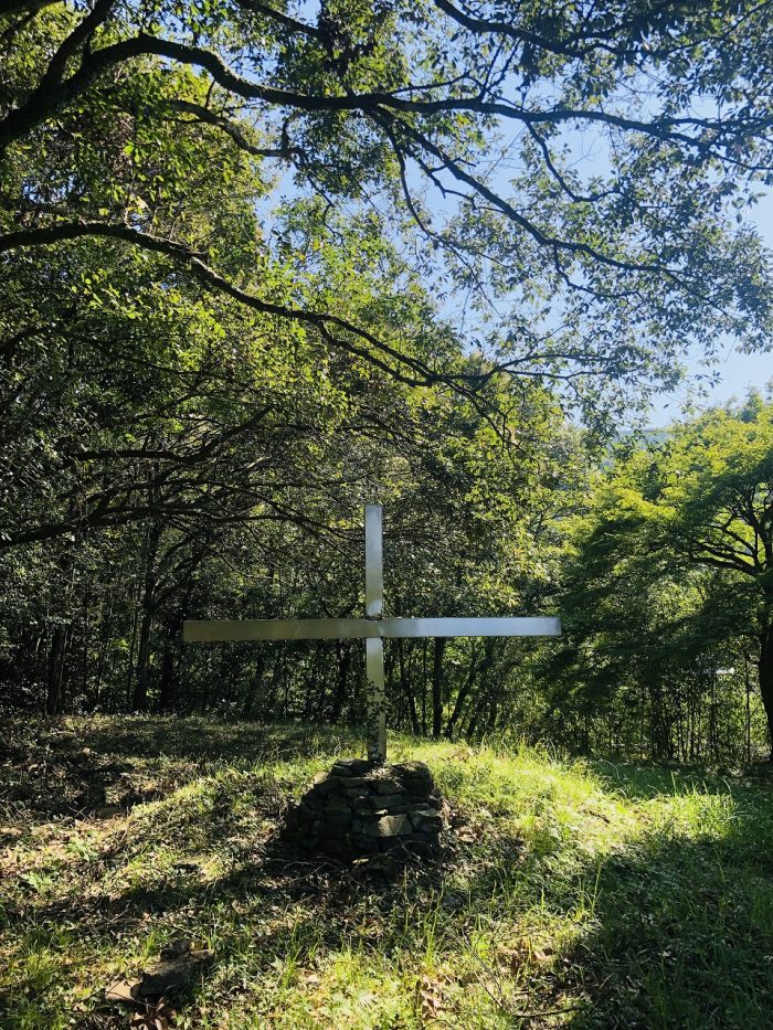 蔦の絡まる十字架。かつてここに祈りの場があったと感じられる、おごそかな空気が漂います。長年、薩摩川内市に暮らす人にも、あまり知られていない場所ではないでしょうか。歴史をひもとけば、この皿山天主堂は現在の川内カトリック教会(若松町)へと、連なります。港町の京泊教会跡(ロザリオの聖母聖堂)や、薩摩の殉教者として知られるレオ税所七右衛門など、薩摩川内市とキリスト教とは意外に深いつながりがあるようです。東シナ海をめぐる海路のロマン、そして異国の地で布教に努めた宗教者たちに思いを馳せつつ、石段を降りました。