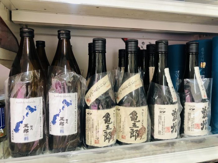 島魚に合わせるなら、下甑の芋焼酎はいかが。甑島には上甑に塩田酒造、下甑に吉永酒造とひとつずつ焼酎蔵があり、それぞれ個性的な銘柄を生みだしている。甑州(そしゅう)、五郎、亀五郎は吉永酒造。蛍水と呼ばれる清らかな伏流水を仕込み水に使い、優しい味わいが多くの人に愛されている。