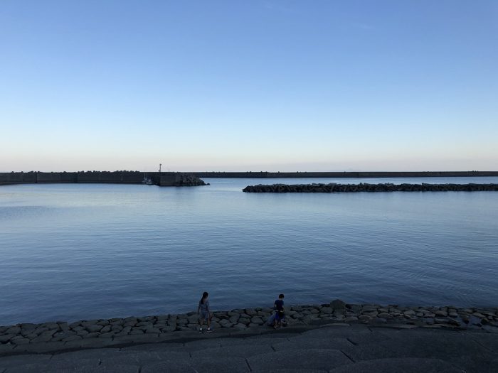 長浜港で遊ぶ子供たち。日が暮れてきた。