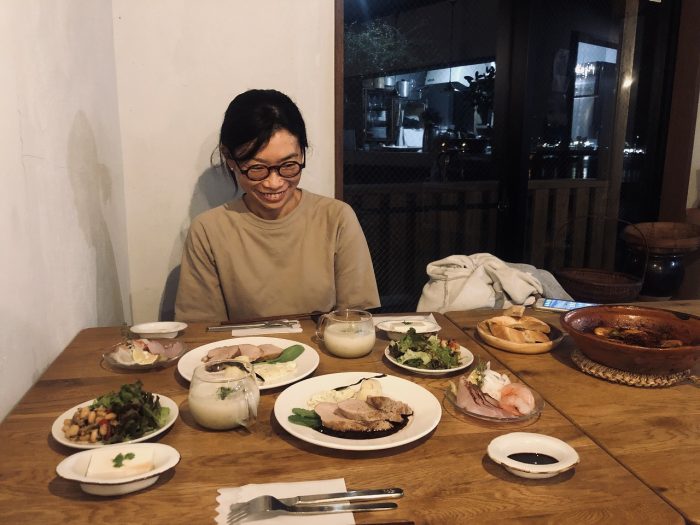夕焼けを見届けたあとは、お待ちかね!ampersand で晩ごはん。仕事を終えた友人も合流。下甑観光案内所に勤める甑島観光のキーマン、唐澤智子さんと一緒に乾杯!お料理を前についつい笑みがこぼれてしまう智子さん。